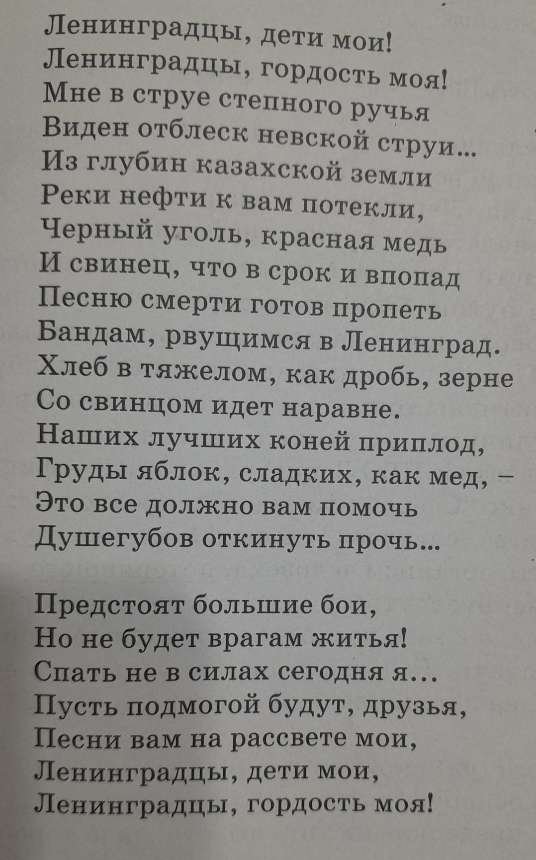 В первой строфе поэтесса обращается к жителям Ленинграда, называя их своими детьми, что подчеркивает близость и взаимную причастность. Она говорит, что они прошли через ужасные испытания во время блокады, но не сдались и выстояли, сохраняя свою силу и веру.