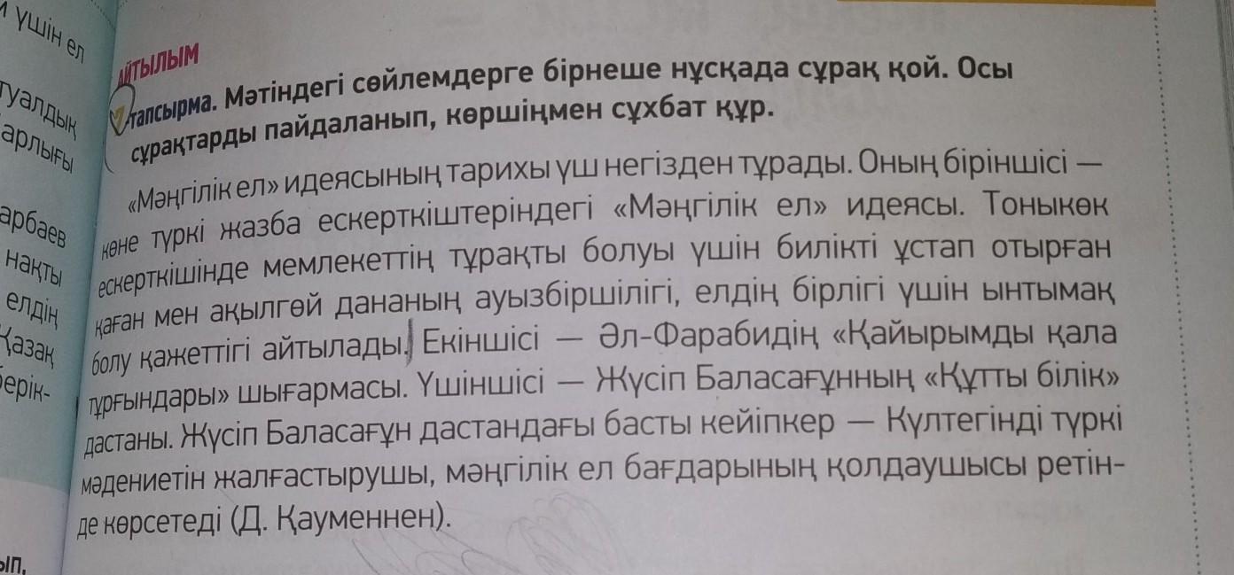 -бізге үй жұмысына <мәңгілік ел> идеясының тарихы неше негіздерден тұрады? деген сұраққа жауап беру керек.