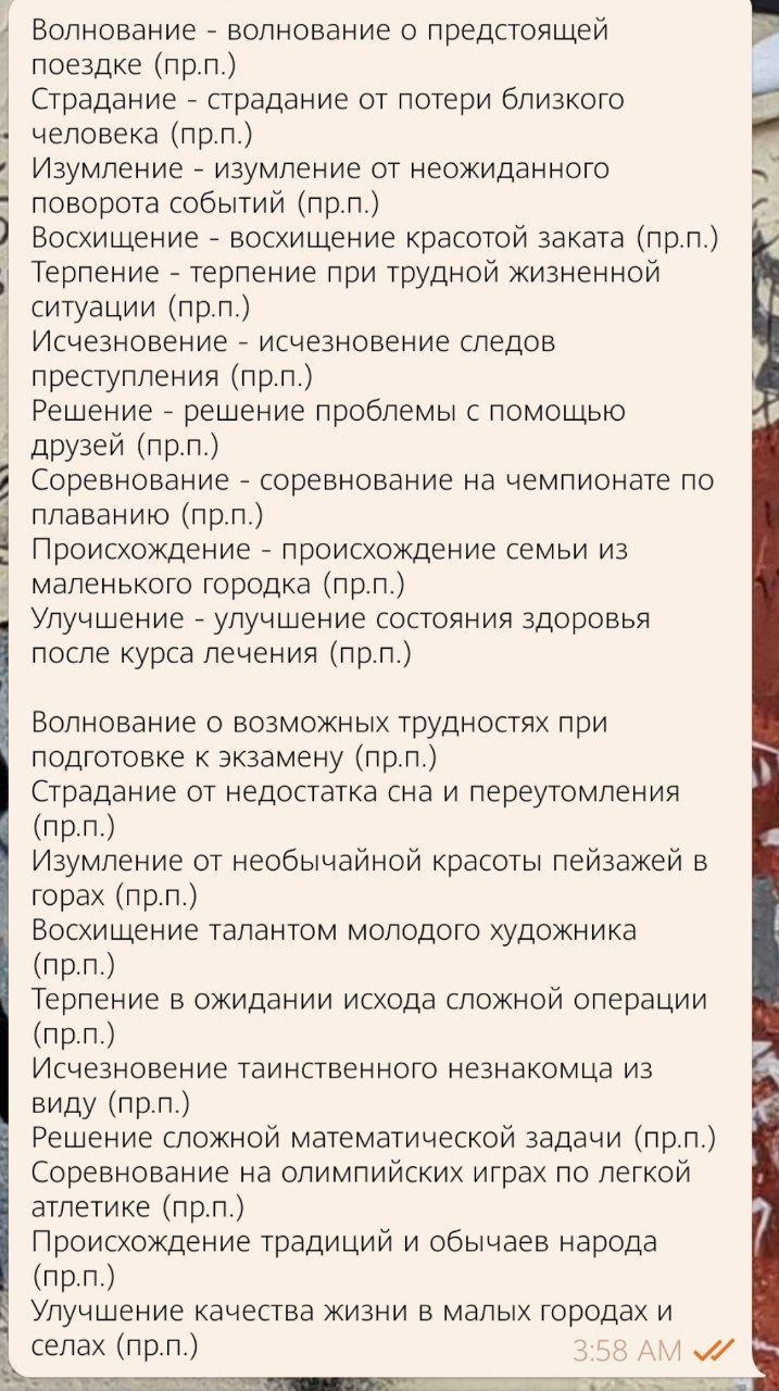 Образуйте от данных глаголов существительные на чо ця, -ий, - составьте с ними словосочетания. Употребите полученны предложном падеже Образец: стараться при большом старании (П.п.) Волноваться, страдать, изумляться, восхищаться, терпеть, исчезнуть, решить, сорев новаться, происходить, улучшить, 6образуйте От данных глаголов существительные и я и е и составьте с ними словосочетания употребите полученные слова с предложенным падеже
