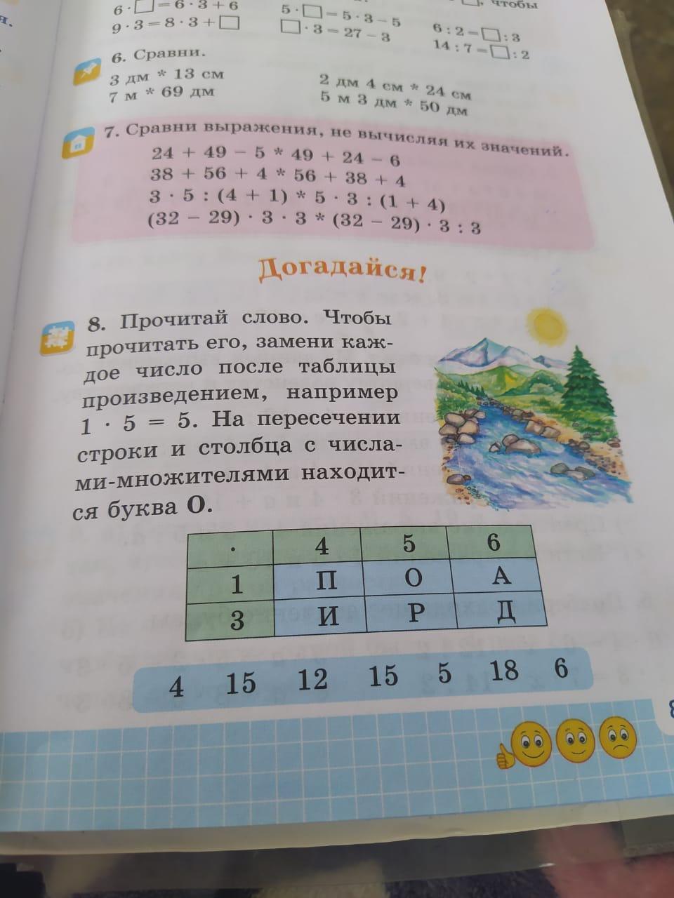если умножить 4×1 то будет буква "п", а 3×5 буква "р", 3×4 буква и, 3 ×5 буква р, 1×5 о, 3×6 буква д, 1×6 буква а