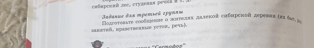 Подготовьте сообщение о жителях далекой сибирской деревни (их быт, Задание для третьей группы занятий, нравственные устои, речь). (Конь с розовой гривой )