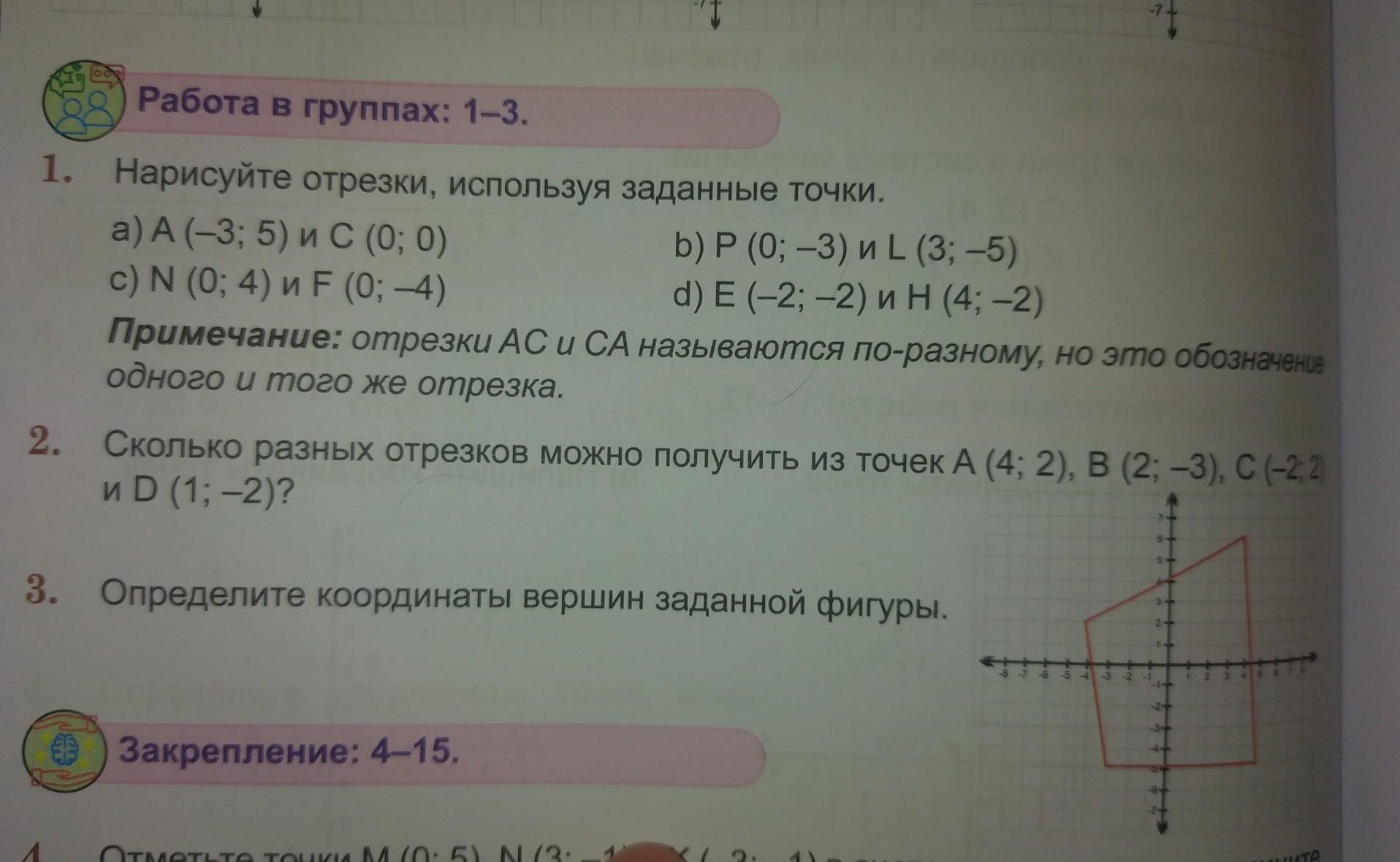 Ты начерти Кордиантную прямую там где -3 по горизонтали и 5 по вертикали и чертишь так чтобы они пересекались и так все остальные во 2 заданий там получится 4 разных отрезков и 3 это легка
