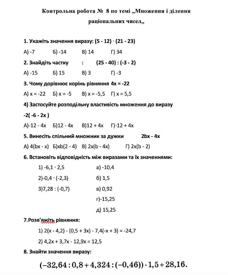 7. 1) Розкриймо дужки: 2x - 8,4 - 0,5 - 3x + 7,4x - 22,2 = -24,7