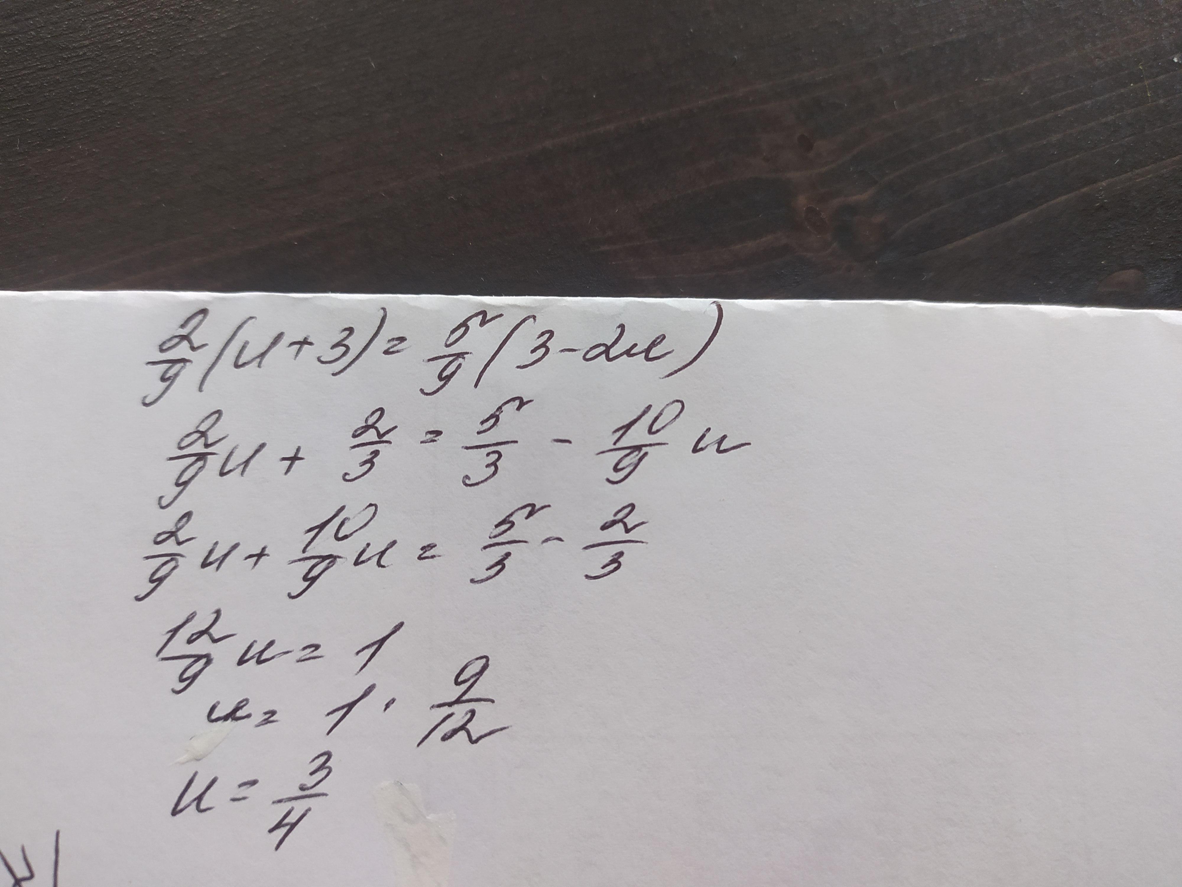 Розв'яжіть рівняння 2 /9 (u+3) = 5/9 (3-2u)