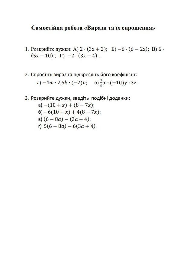 г) 5(6-8a)-6(3a+4)=30-40a-18a-24=6-58a
