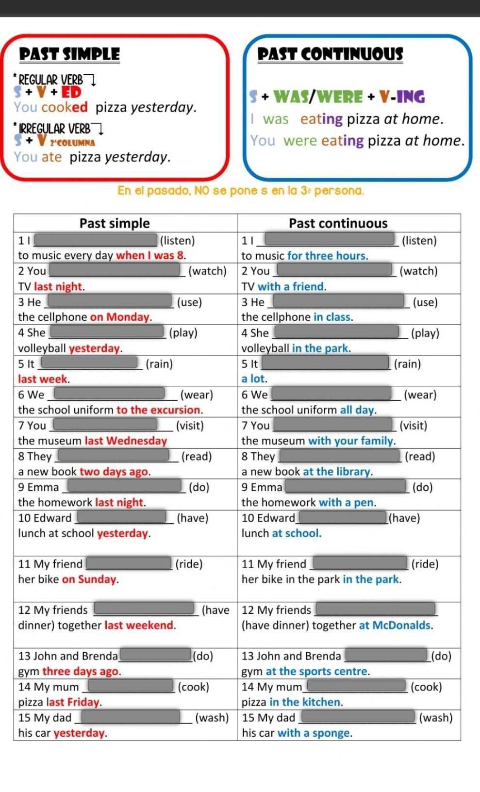 listed, watches, used,played,rained, wearied, visited, readers, does, haved, rides, haved dinner, does, cooked, washed