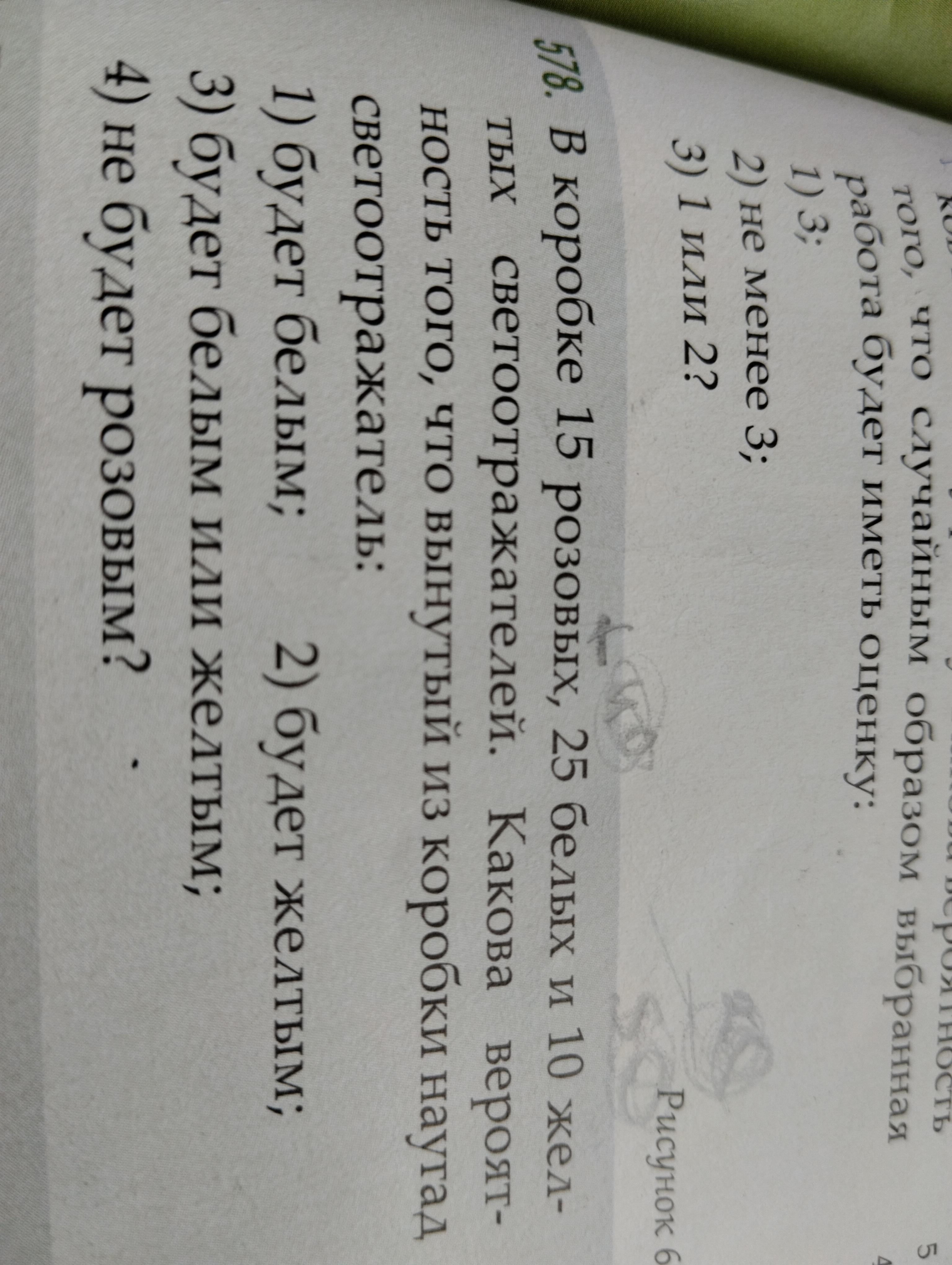 4) (25 + 10)/50 = 35/50 = 7/10 — вероятность того, это не будет розовый светоотражатель