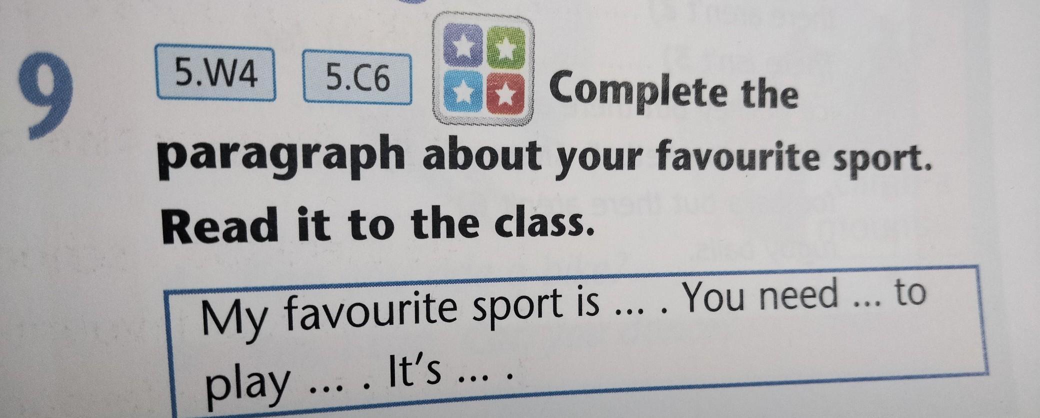 9. Complete the paragraph about your favourite sport. Read it to the class