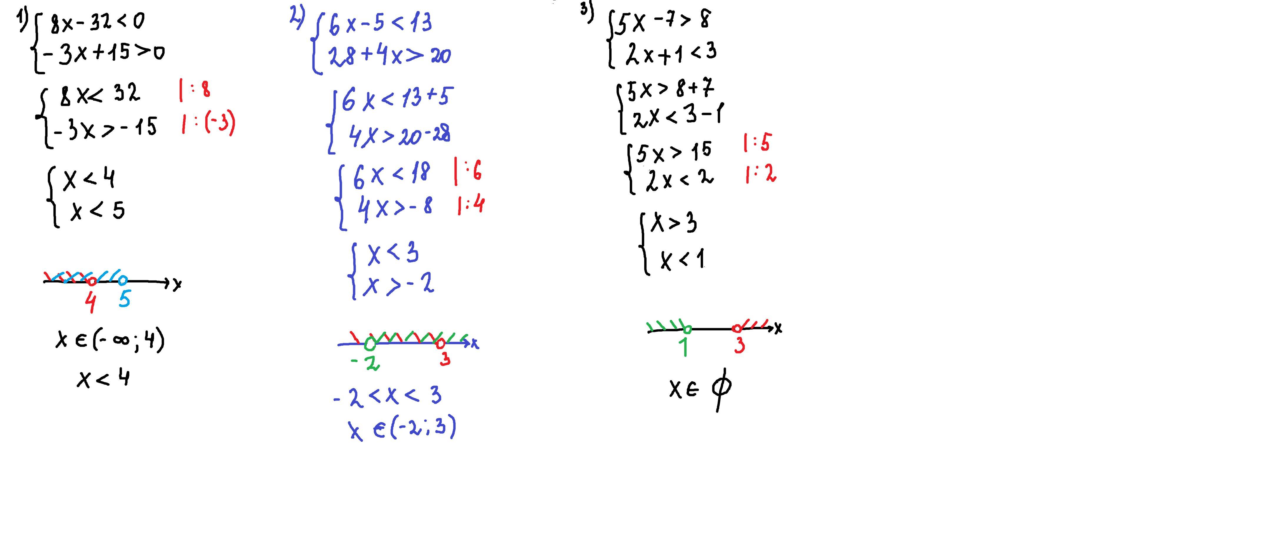 3) система решений не имеет, пустое множество∅