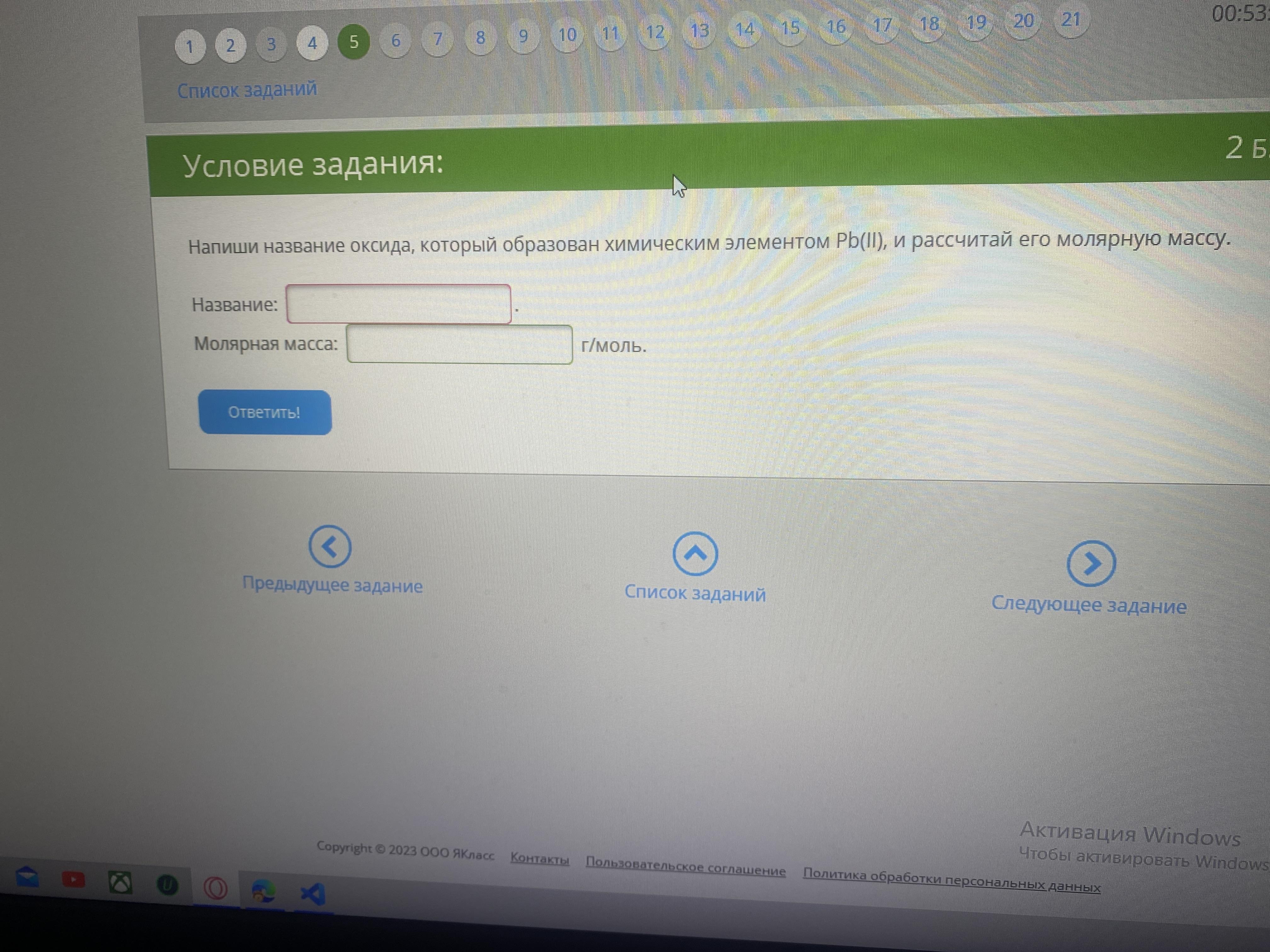 PbO(оксид свинца;амфотерный оксид), Mr(PbO)=207+16=223г/моль