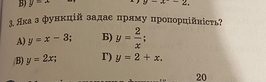 из данных функций прямая пропорциональность задана формулой в ответе В) у=2х