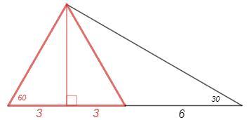 Высота в равностороннем треугольнике является также медианой - делит основание пополам, 6/2=3