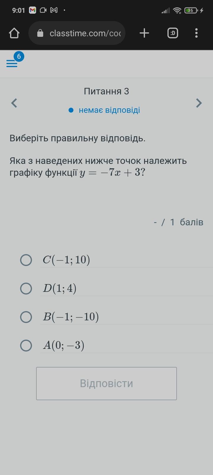 Яка з наведених нижче точок належить графіку функції
