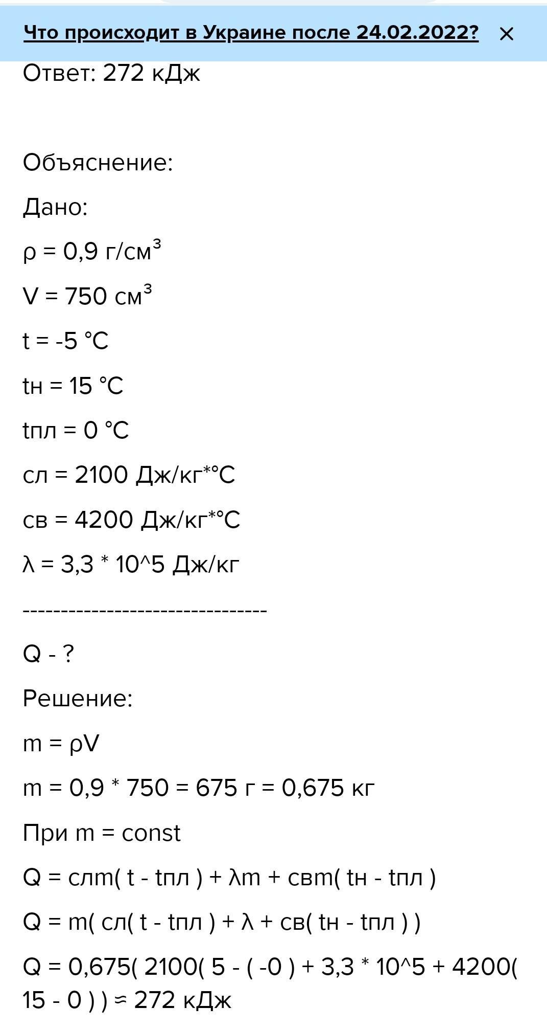 в холодильнику виготовили 750 см³ льоду при температурі -5°С. Скільки теплоти було відведено від води і льоду при цьому, якщо початкова температура води 15°С? Зобразіть цей процес на графіку.