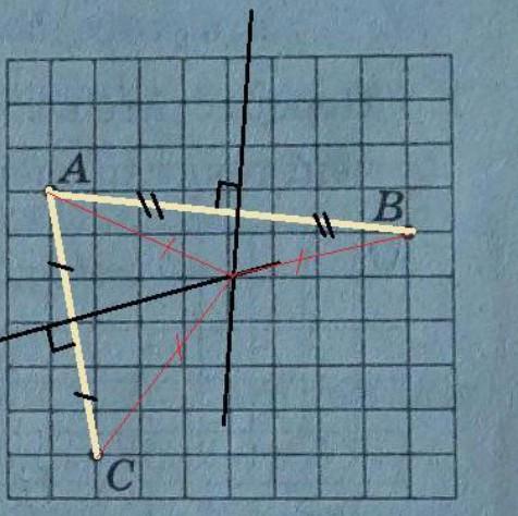 3. точка пересечения серединных перпендикуляров центр окружности с точками А, В, и С.