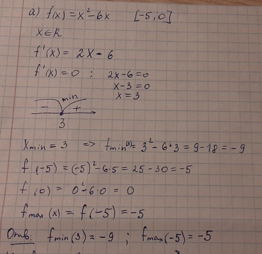 a) f(x) = x² - 6x на проміжку [-5;0]