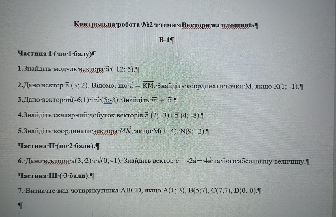 Контрольна робота №2 з теми «Вектори на площині»
