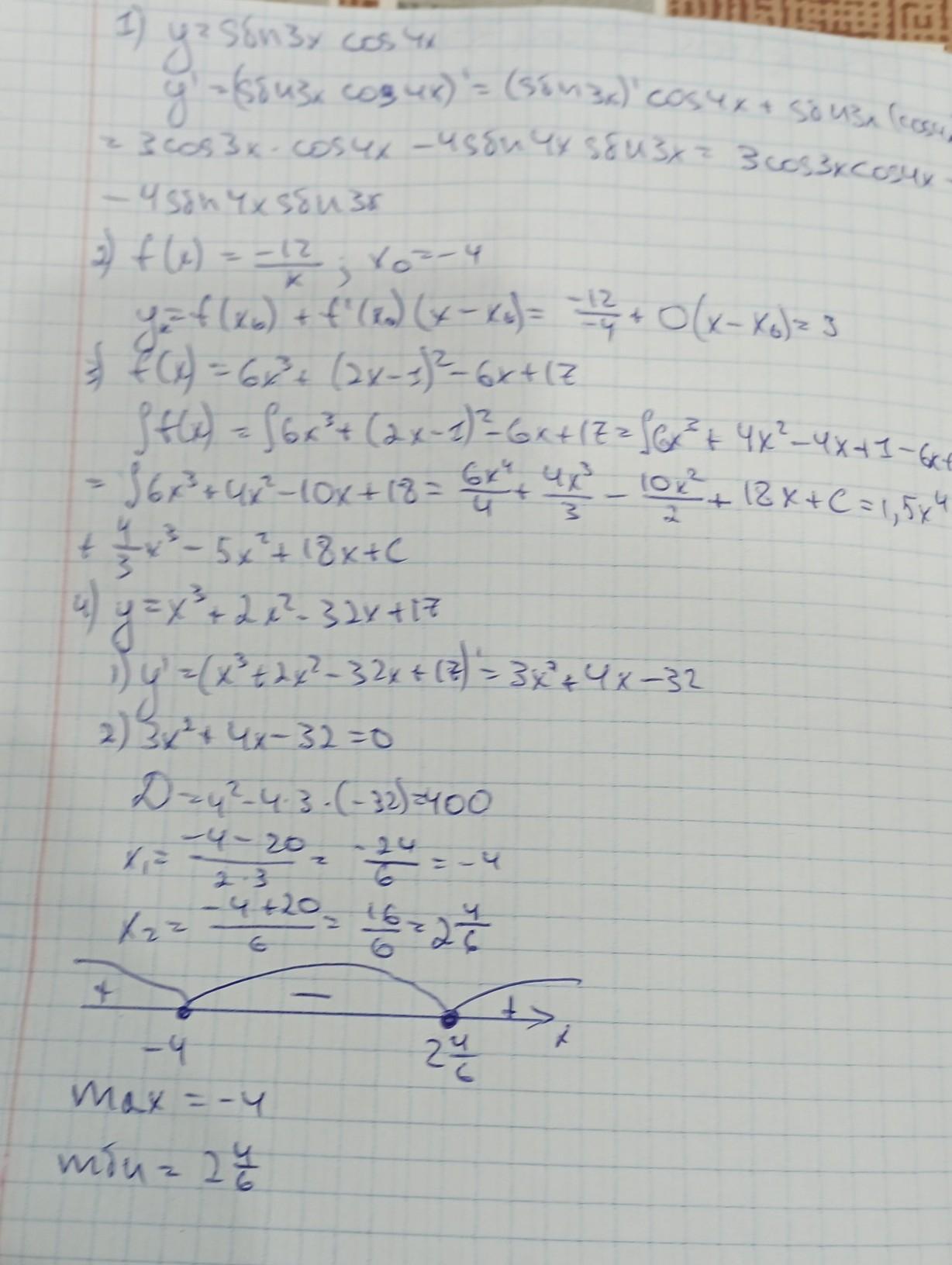 3. Найдите общий вид первообразной для функции f(x) = 6x3 + (2x - 1)2 – 6x + 17.