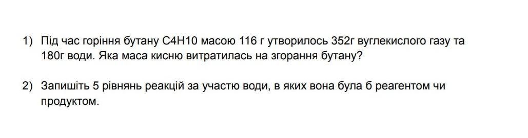2)Рівняння реакцій, в яких вода була б реагентом: