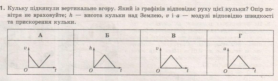 Кульку підкинули вертикально вгору. Який з графіків відповідає руху кульки? Опір повітря не враховуйте.