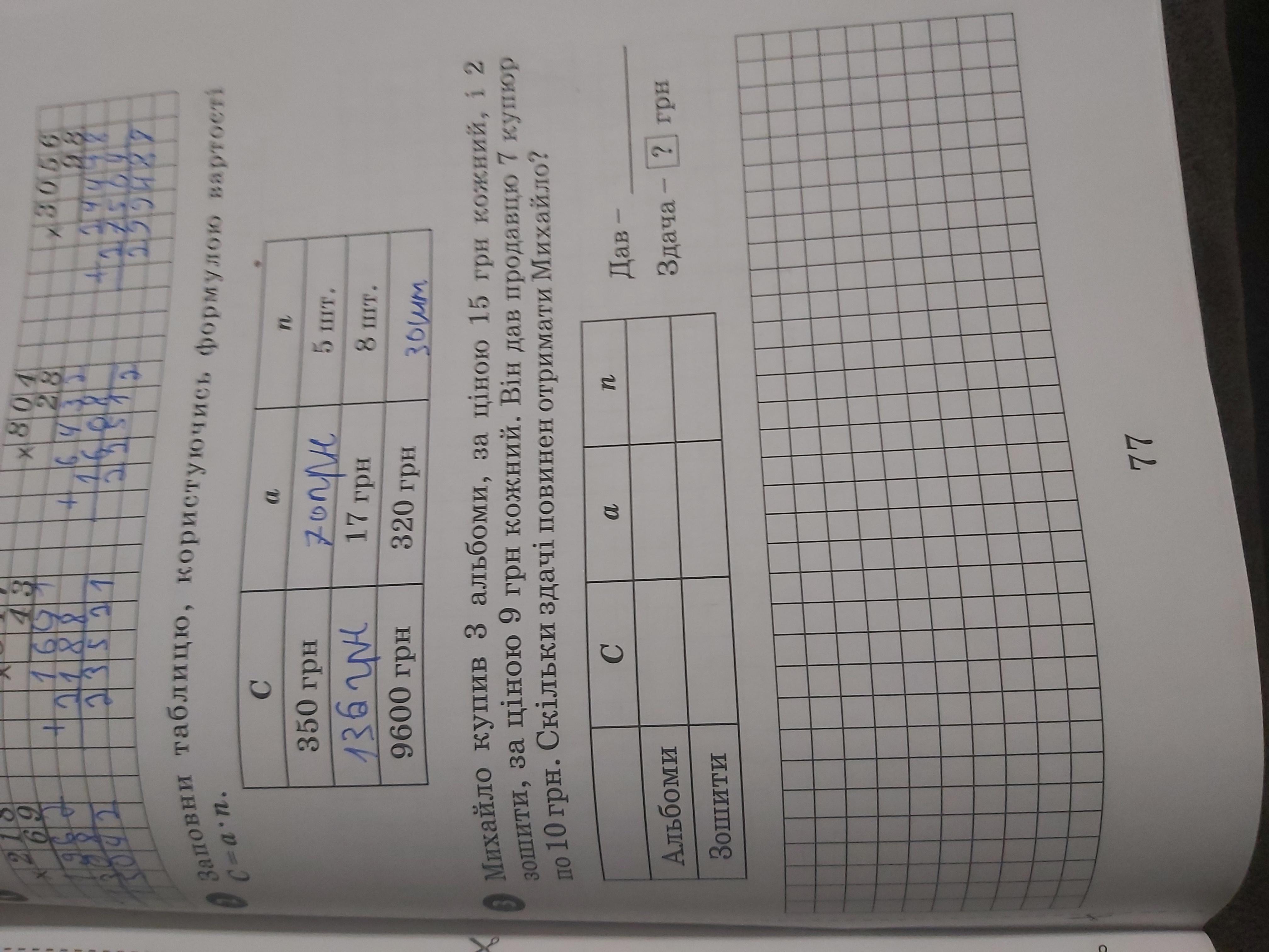 В a записуем цену одной штуки ( 15 грн.(альбом) и 9 грн.(тетради))