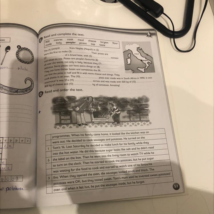 2) Italy 3)pizzas 4)made 5)cheese 6)meal 7)taste 8)top 9)cook 10)largest 11) metres 12)flour 13)900