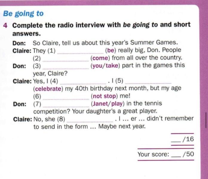 6. Is Janet going to play in the tennis competition? - No, she isn't.