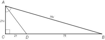 AD - биссектриса, CD=21, DB=75