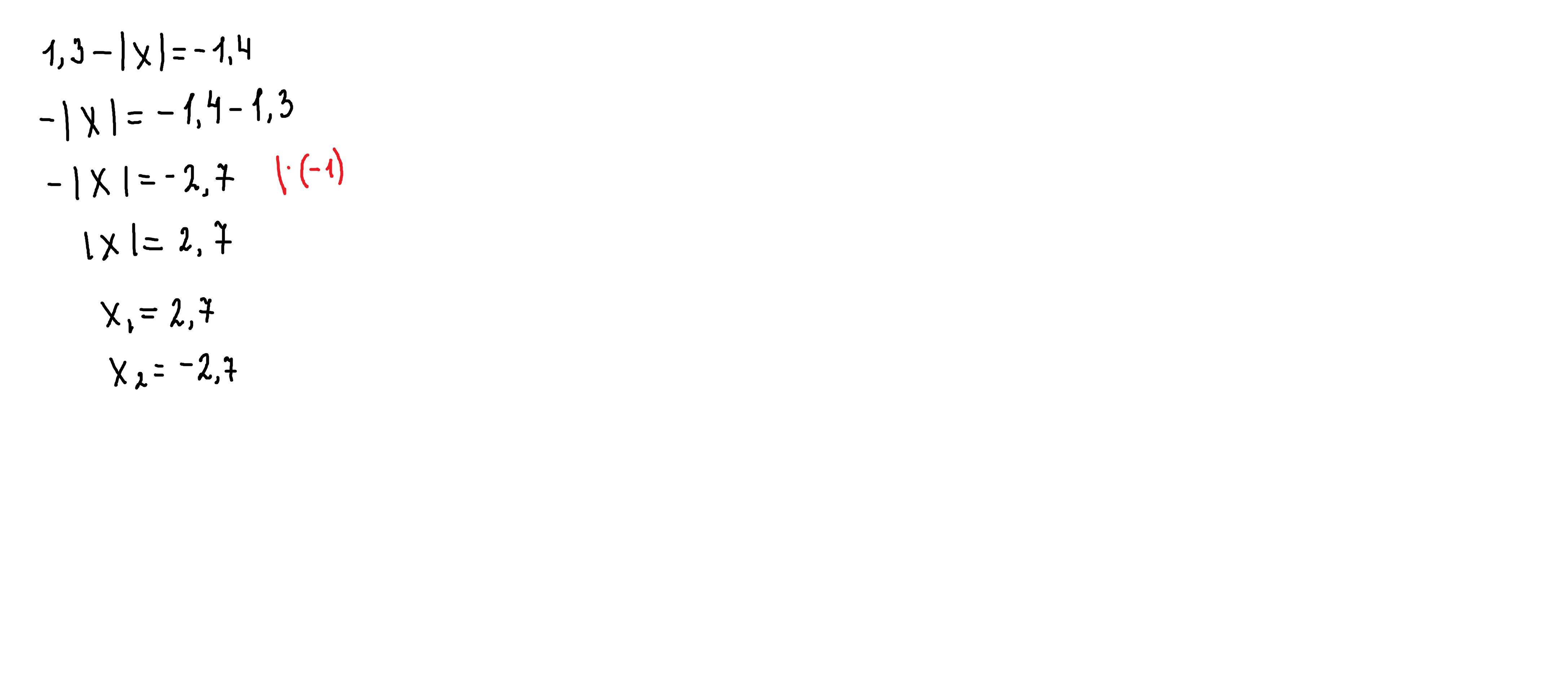розв'яжіть рівняння послідовно 1,3-|x|=-1,4