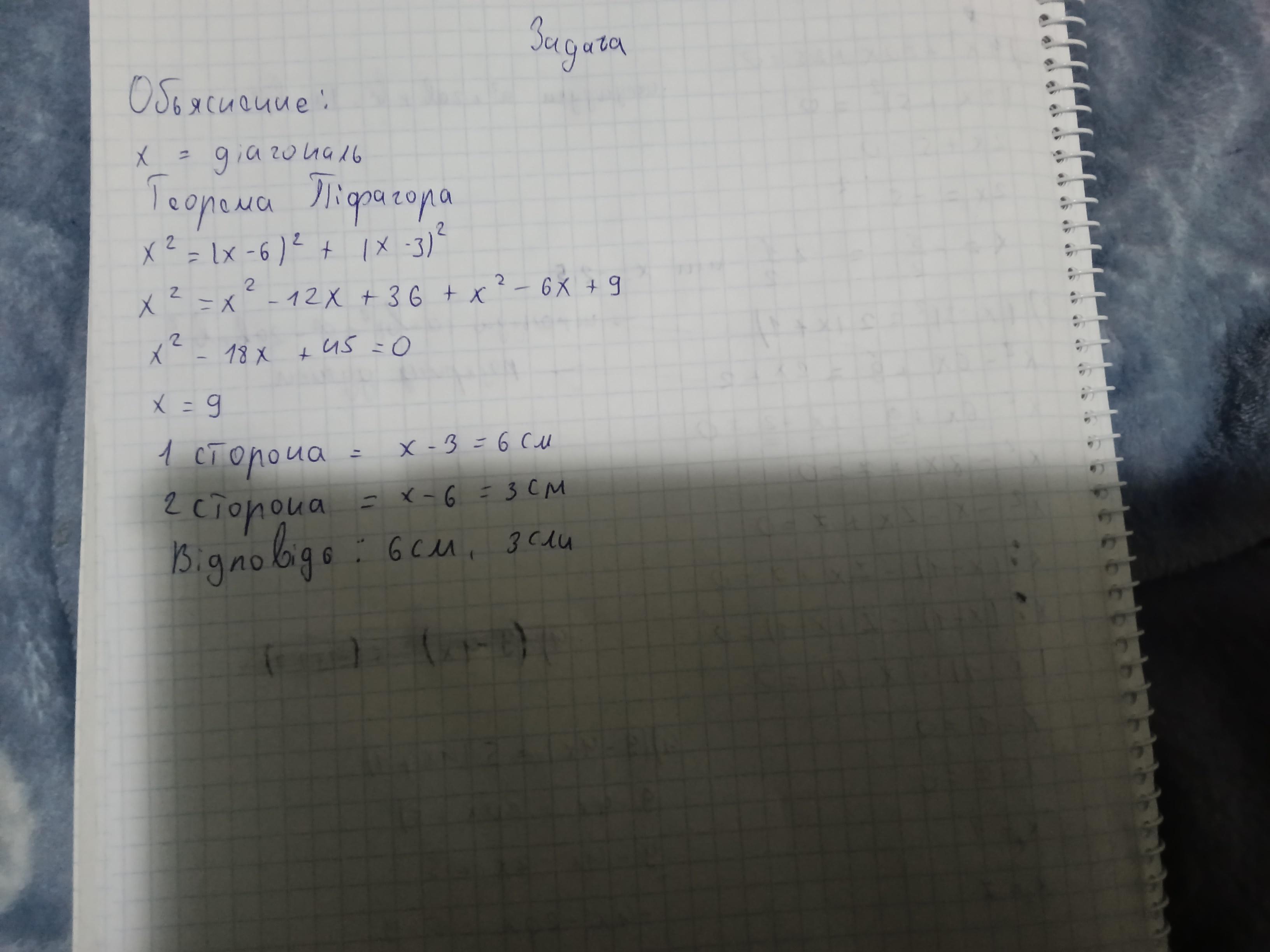Діагональ прямокутника на 6 см більша за одну зі сторін і на 3см більша за другу. Знайдіть сторони прямокутника.