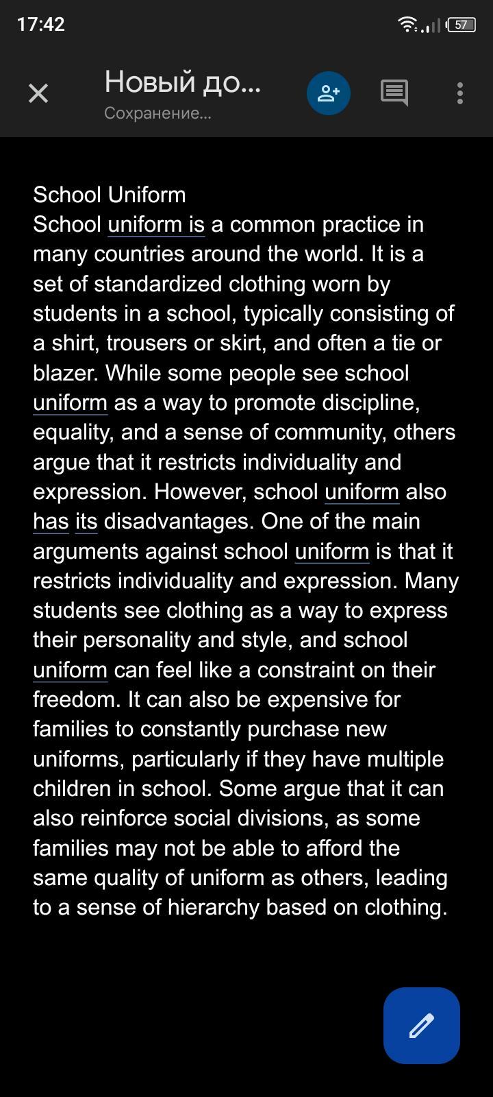 In conclusion, school uniforms have several benefits and should be mandatory in all schools. They create a sense of community and eliminate competition about clothing, promote equality, teach respect, and save time and energy. The advantages of having a school uniform far outweigh the disadvantages, and I believe that uniforms are essential for the academic success and personal development of students.