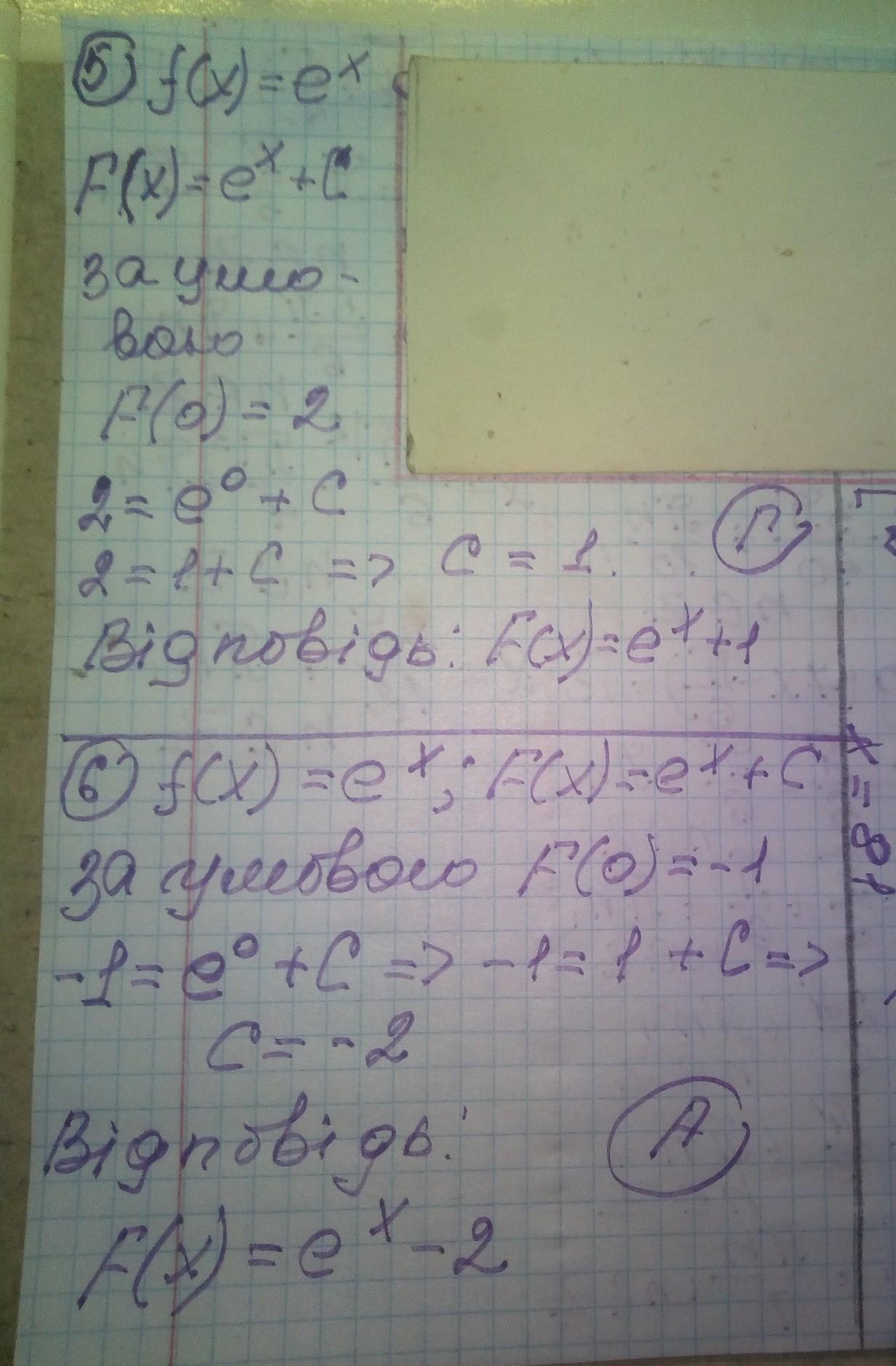 5. Для функції f(x)=ex знайдіть первісну, графік якої проходить через точку А(0;2)