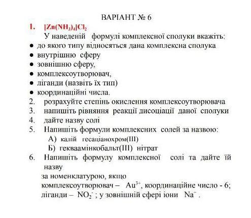 - внутрішня сфера - Zn(NH3)4^2+ (четирьохкоординатний комплекс цинку з аміаком)