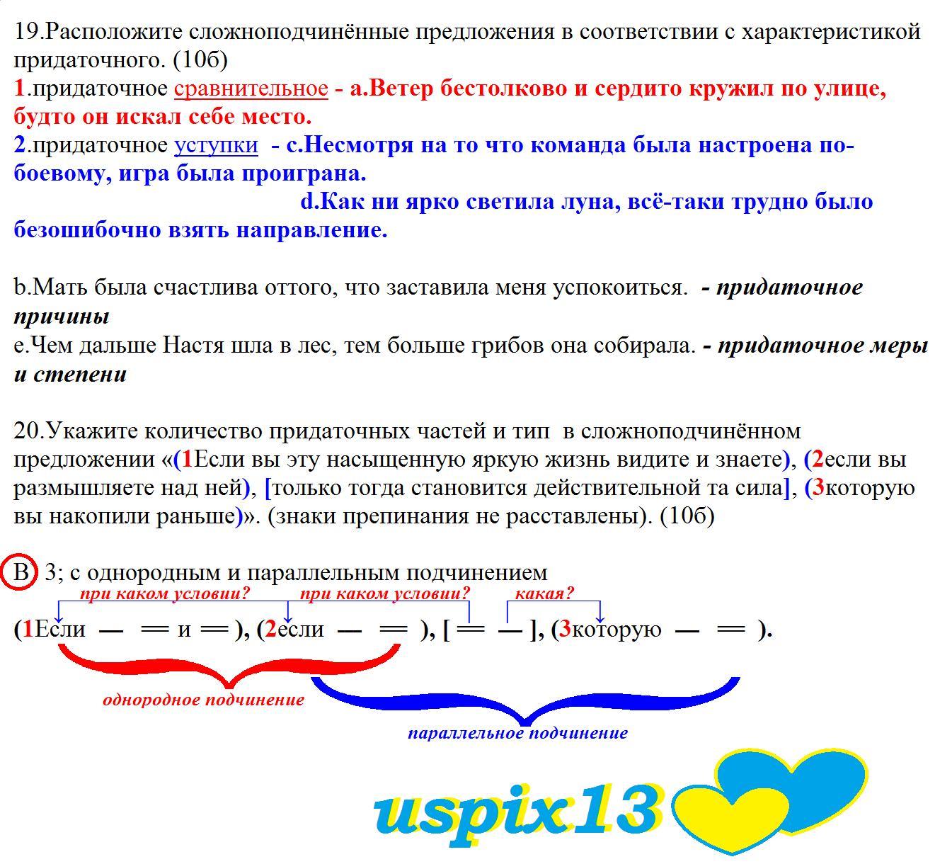 19.Расположите сложноподчинённые предложения в соответствии с характеристикой придаточного. (10б) 1.придаточное сравнительное 2.придаточное уступки a.Ветер бестолково и сердито кружил по улице, будто он искал себе место. b.Мать была счастлива оттого, что заставила меня успокоиться. c.Несмотря на то что команда была настроена по-боевому, игра была проиграна. d.Как ни ярко светила луна, всё-таки трудно было безошибочно взять направление. e.Чем дальше Настя шла в лес, тем больше грибов она собирала.____________________________________________