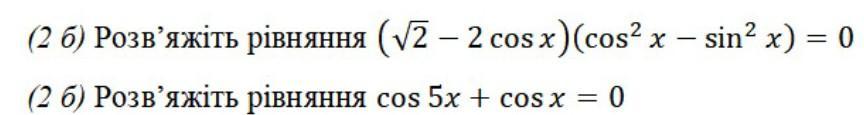 2cos^2x - 1 = 0, тоді cosx = ±1/√2