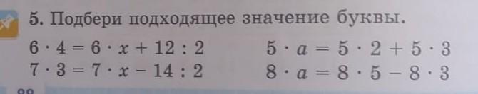 5. Подбери подходящее 6.4 6x + 12:2 7.3=7 x - 14:2 . 88 значение буквы. - 5 a=52+5.3 a 8.5-8.3 8 =