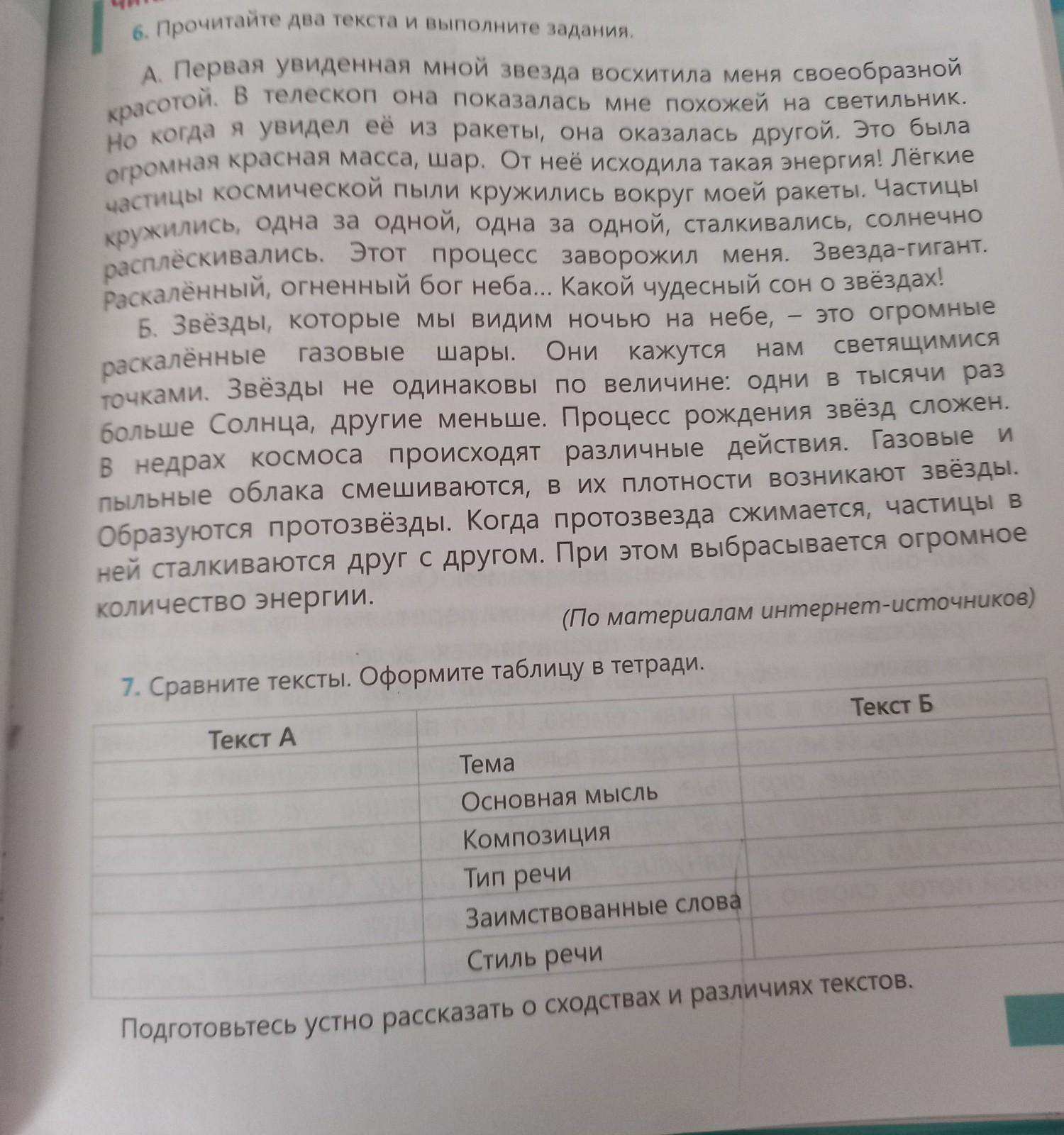 7.Сравните тексты.Оформите таблицу в тетради Текст А и Текст Б