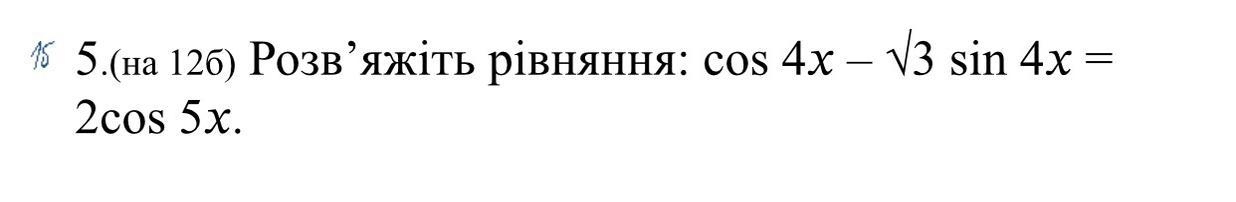 1/2 cos4x - √3/2 sin4x = cos5x
