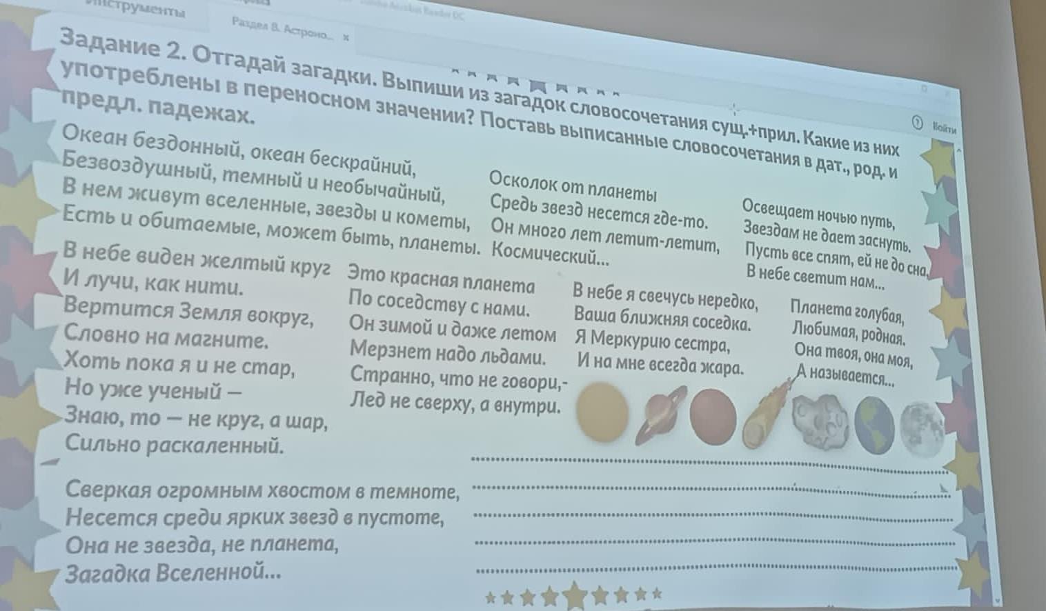 8.Комета.сущ+прил-огромный хвост,яркие звёзды.