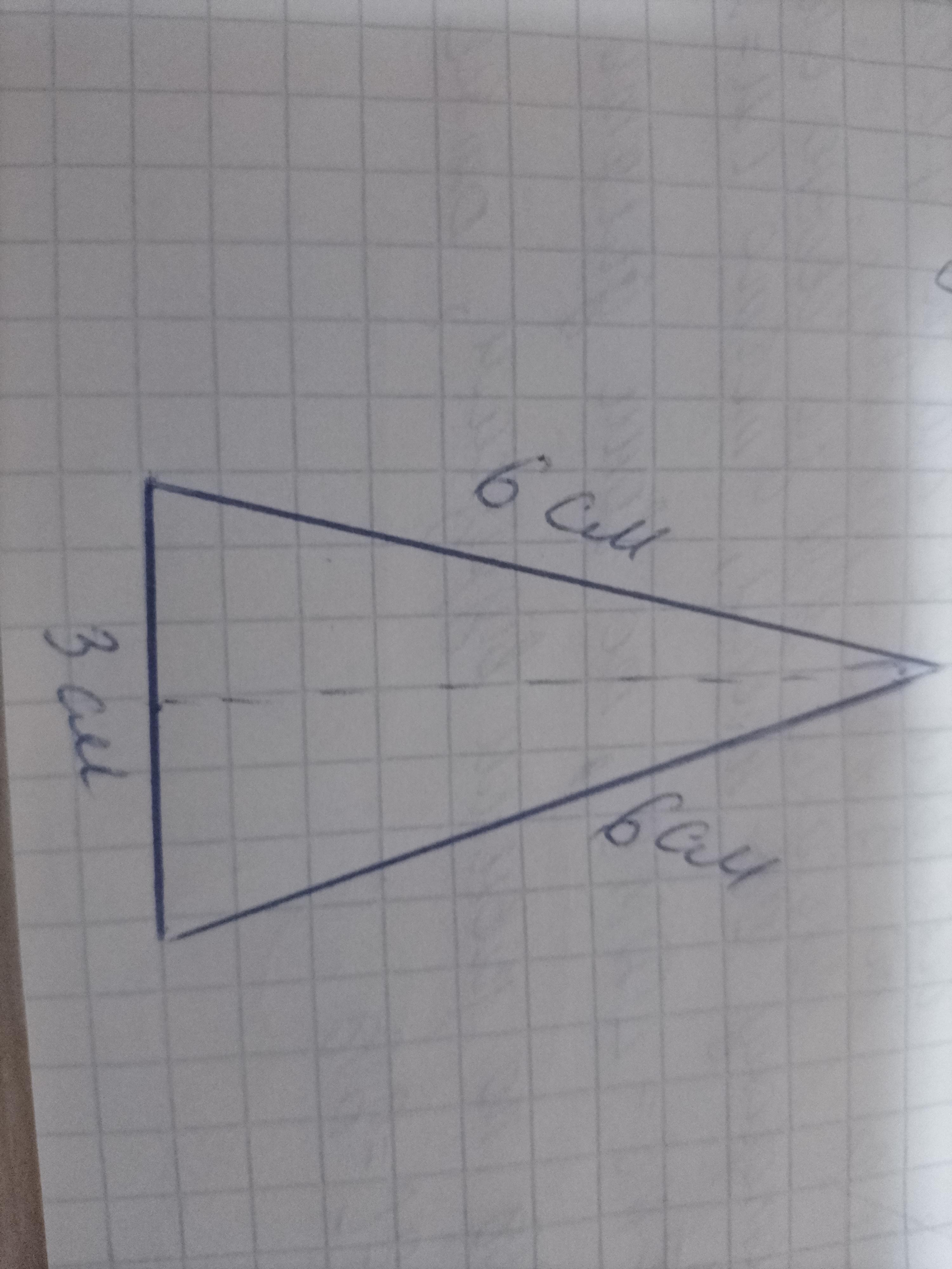 Побудувати рівнобедрений трикутник з основою 3 см та бічною стороною 6 см.