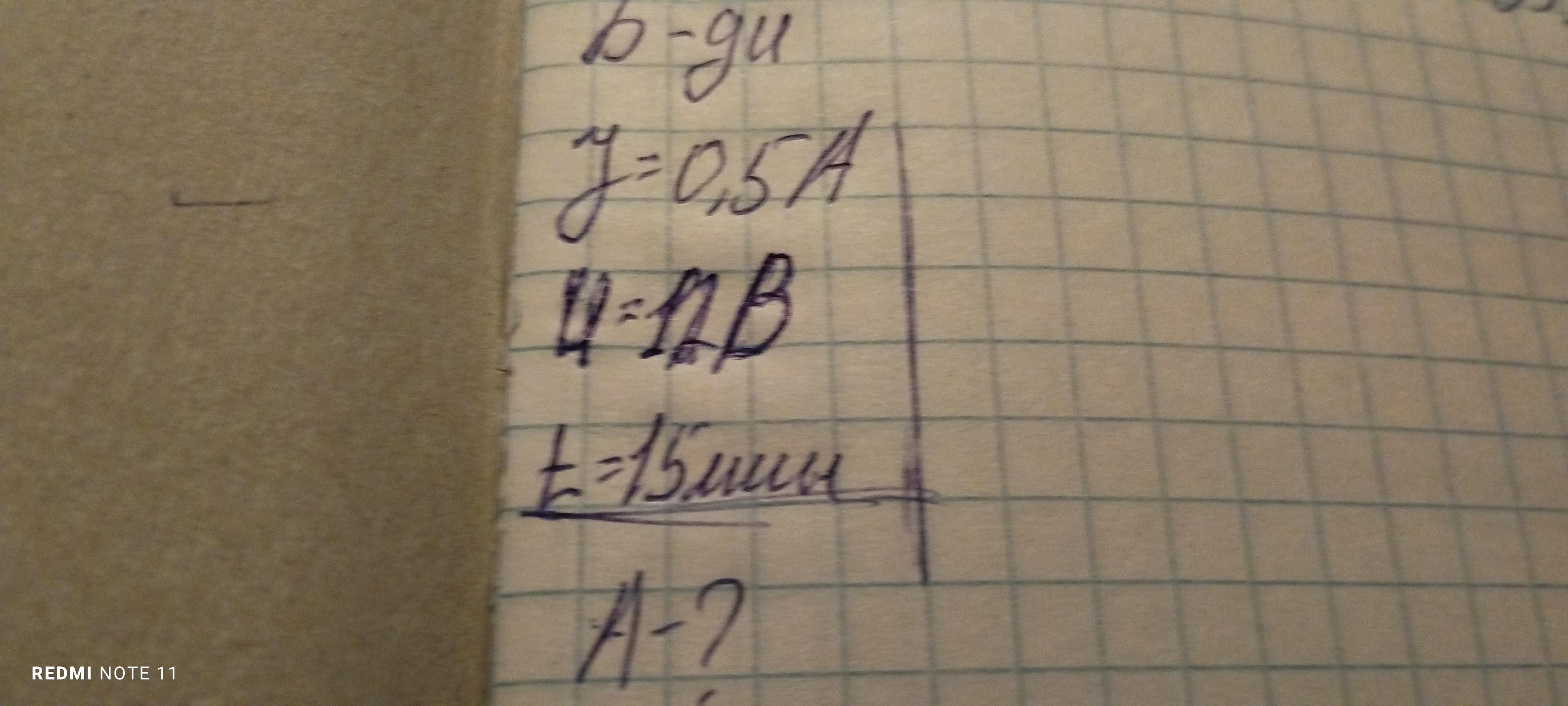 A = 12B × 0,5A × 900 c = 5400 дж