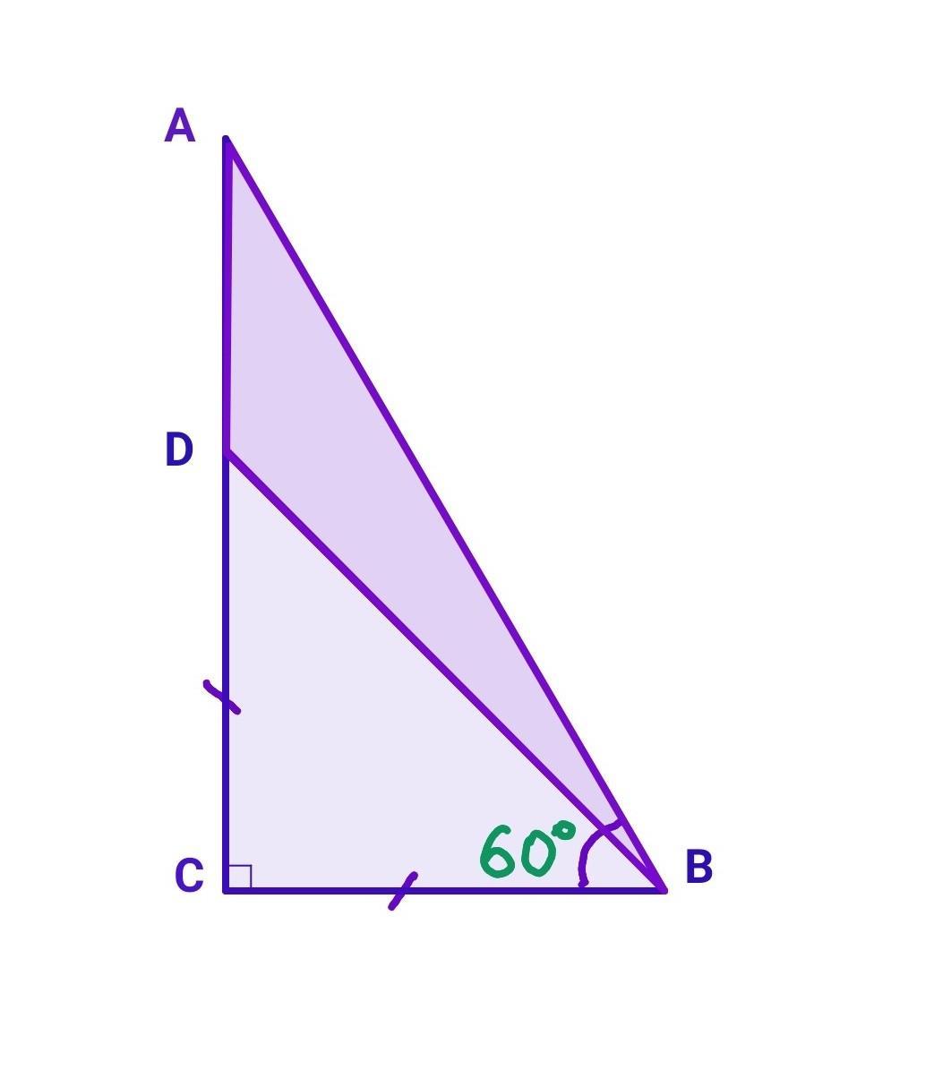 Дано: △АВС(∠С=90°), ∠В=60°, D∈AC. CD=CB