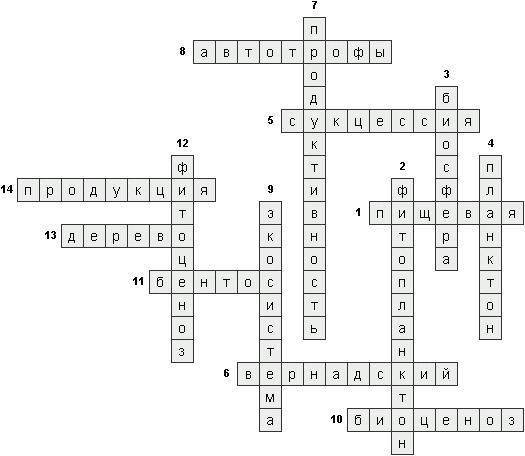 Составить кроссворд по теме: «Причины смены экосистем» (5 вопросов)