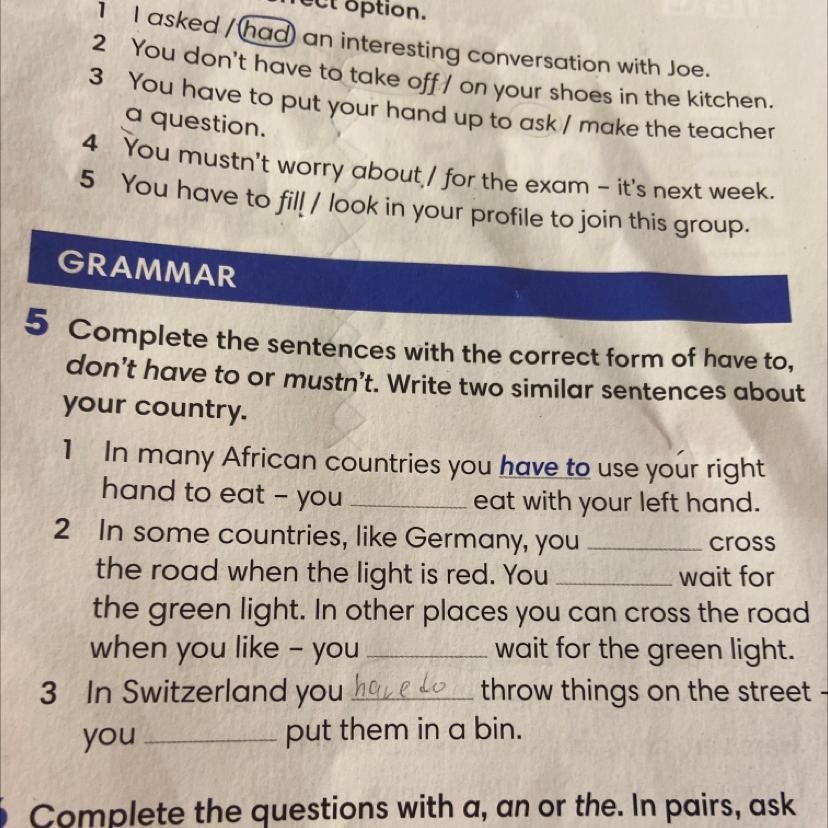 3. mustn't; have to.