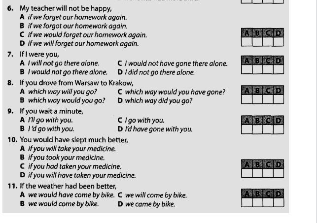 Нужно выбрать правильное продолжение предложения из 4-х предложенных (A-D).