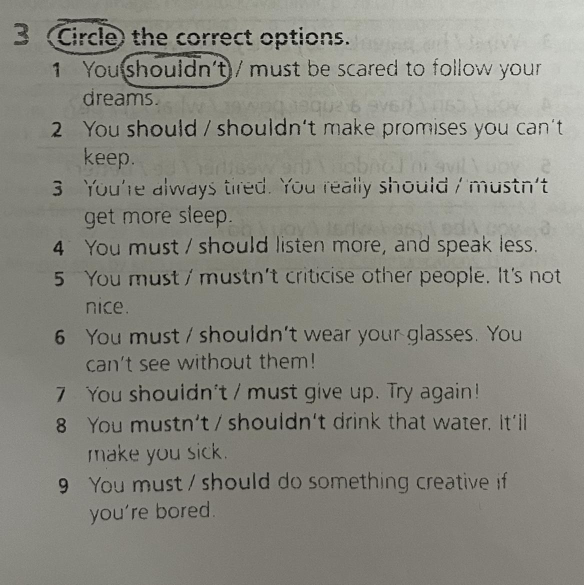 2. You shouldn't make promises you can't keep. 3. You should get more sleep.