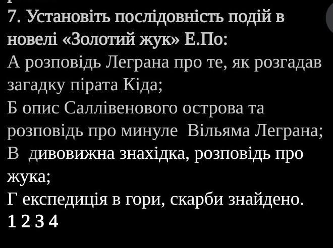7. Установіть послідовність подій в новелі «Золотий жук» Е.По: