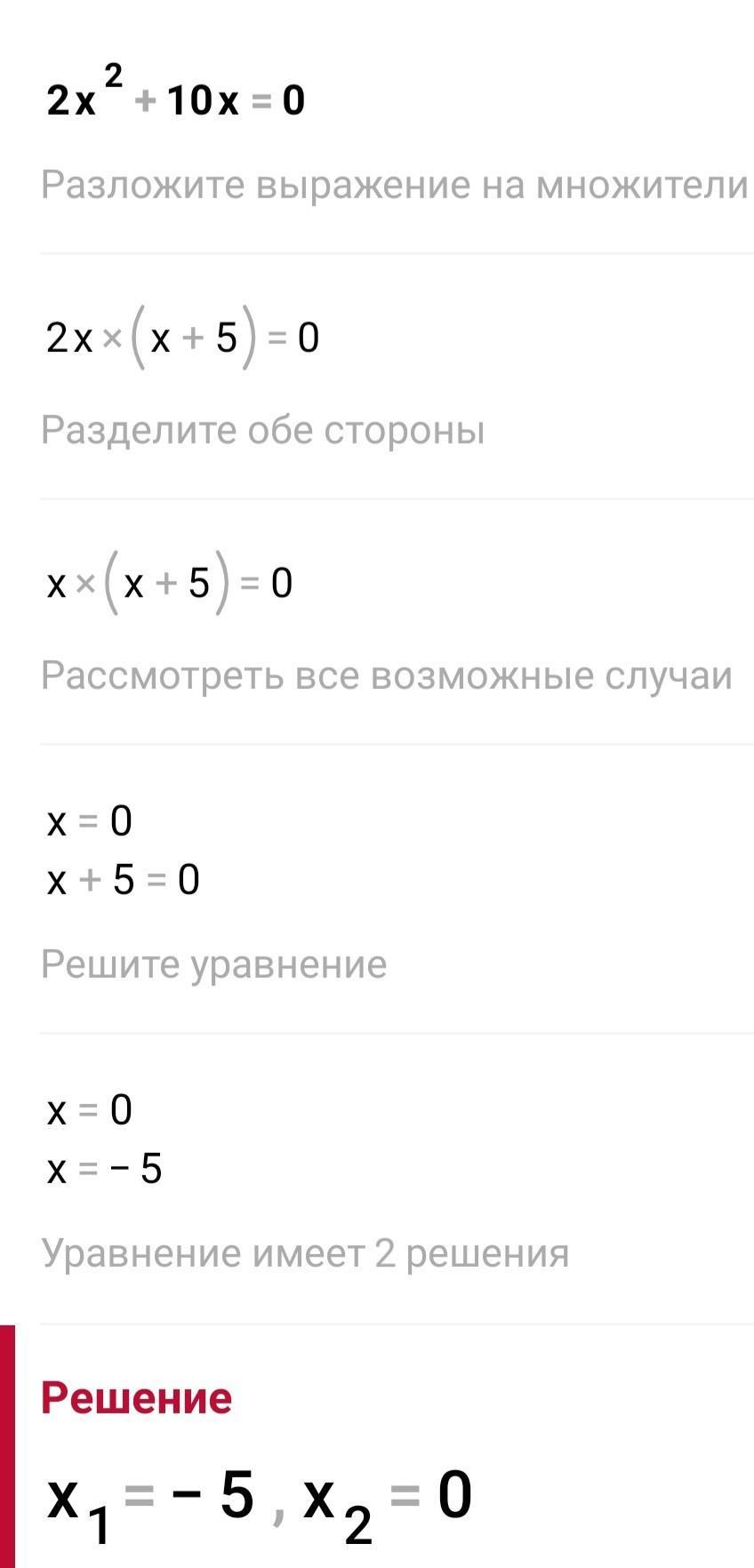 Отсюда x=0, x=-5. Уравнение имеет два корня: x=0, x=-5