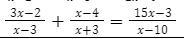 3x - 2/(x - 3) + (x - 4)/(x + 3) = (15x - 3)/(x - 10)