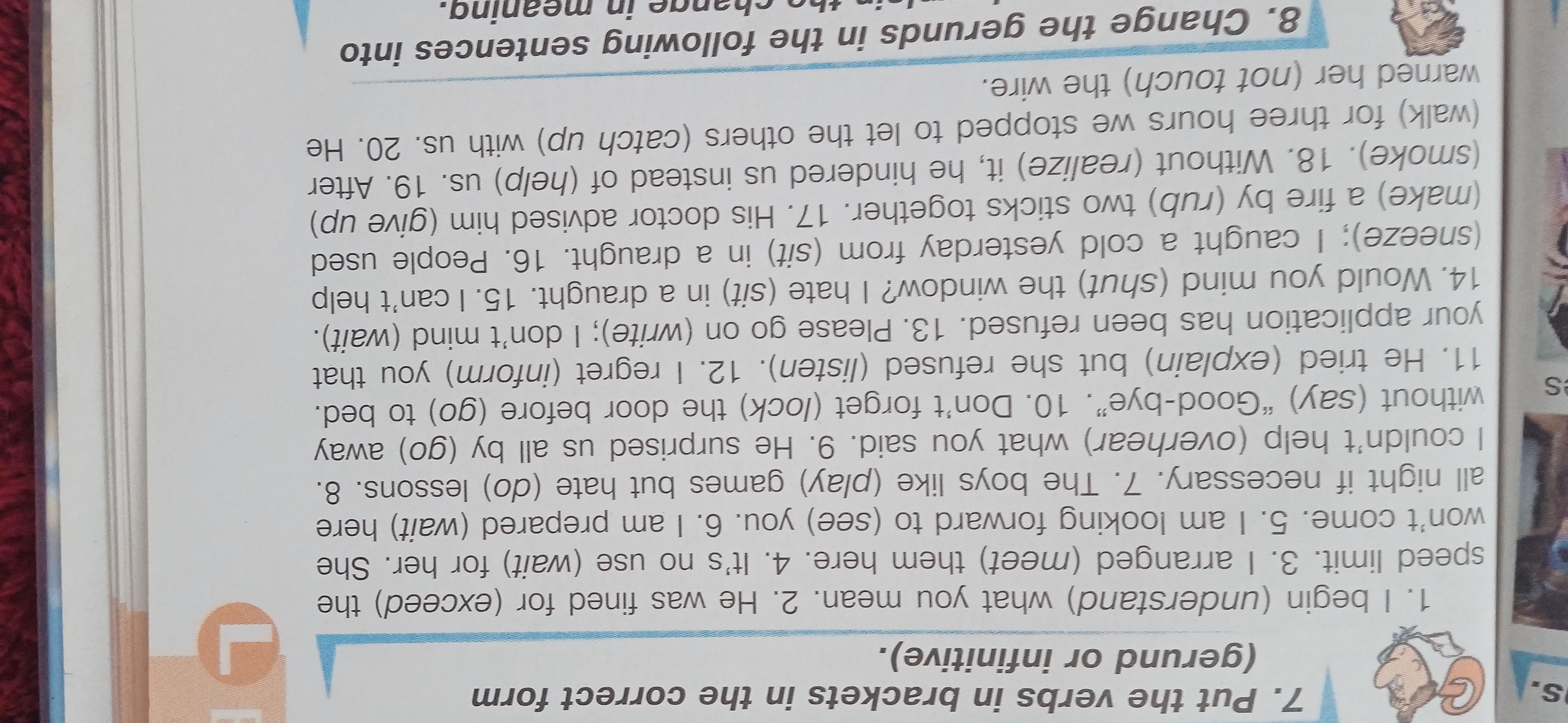 Допоможіть як найшвидше, будь ласка. Тут герундій, хто знає після яких слів його ставити. Просто написати слово розкривши дужки, без всього речення.
